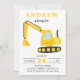 Invitation de la partie Anniversaire de enfant de construction de l'excavatrice mignonne