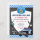 Invitation vos invités avec cette invitation de fête d'anniversaire thématique policière moderne mettant en vedette des éléments de police cool contre un arrière - plan de tableau noir. Ajoutez simplement les détails de votre événement sur ce modèle facile à utiliser pour en faire une invitation unique.