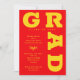 GRAD en or jaune en gras courbures de lettrage autour des bords de ces invitations de fête de graduation arrière - plan rouge.VOIR LA COLLECTION complète des combinaisons de couleurs préfaites, plaques de papier, serviettes, ballotins et invitations de fête de graduation dans notre magasin.