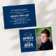 Annoncez votre baccalauréat ou diplômé de l'université en style avec cette faire-part de remise de diplômes et l'invitation de la fête. La carte recto-verso présente un portrait supérieur du diplômé avec un casquette de grade et un design simple et moderne de typographie blanche. L'arrière - plan bleu marine peut être changé en une couleur différente avec la fonction "Customiser", puis Éditer / Arrière - plan pour sélectionner une autre couleur.