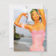 Invitation illustrant une illustration vintage des années 1950 d'une femme en maillot de bain avec une photo que j'ai prise de l'océan dans l'arrière - plan. Customisez-le avec votre propre texte. cool rétro !