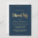 Invitation du Parti de la retraite moderne mettant en vedette des éléments floraux défraîchis sur un arrière - plan de la marine. Personnalisez avec vos détails en lettres dorées à la mode.