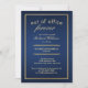 Organisez une fête mémorable de la retraite avec cette invitation classique! Le luxueux arrière - plan bleu marine et la frontière dorée exsument le raffinement, parfait pour honorer le grand jour de la retraite. Avec "Out of Office Forever" écrit dans une police de caractères élégante et les détails exposés dans une police sans serif élégante, cette invitation offre un mélange d'intemporalité et d'attrait moderne. Le dos ajoute une touche festive avec l'expression "Dînez, buvez & soyez à la retraite". Entièrement personnalisable, il est idéal pour les événements personnels ou d'entreprise, en s'assurant que l'occasion est inoubliable.