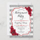 Invitation de la partie de retraite. Elégant design blanc rouge avec fausse parties scintillant argent. Bandes argentées et blanches aux roses rouges. Parfait pour une soirée de retraite élégante pour femmes. Imprimé Zazzle invitations ou télécharger instantanément le modèle numérique.