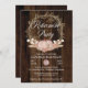 Citrouille rose et chic de campagne avec du blush séché à la terre cuite rose hydrangea floral avec des pampas et d'autres herbes séchées ornées de la couronne de brindilles avec le design "Retirement Party" sur un arrière - plan en faux bois teinté foncé. Ce design composite boisé rustique de Holiday Hearts Designs (droits réservés).