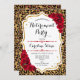 Invitation de la partie de retraite. Elégant design blanc rouge avec parties scintillant en or et motif empreinte de léopard. Caractéristiques de police de script tendance et roses rouges. Parfait pour une soirée de retraite élégante.