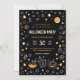 motif fantaisiste de la fête de l'halloween sur un arrière - plan sombre Annoncez votre fête d'halloween avec cette invitation moderne et amusante avec des citrouilles, potions, bonbons et éléments célestes combinant couleurs orange, noir et blanc. Découvrez l'ensemble pour un décor de fête assorti pour célébrer la chute de style. Conception par @rodicadraws.