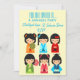 Des invitations à des fêtes adaptées à une soirée japonaise sur le thème du sushi japonais. L'illustration de style d'art de la jolie poupée traditionnelle kokeshi est colorée et la couleur et le texte arrière - plans peuvent être changés selon vos goûts.