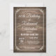Rustic 60th Birthday and Retirement Party Invitation Card with Rustic Wood Arrière - plan. Pays rétro Vintage.