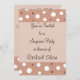 Une invitation moderne à une fête surprise. Pois blanc et chocolat de différentes tailles sur un arrière - plan rose/taupe. Élégant mais simple. Parfait pour les anniversaires ou les événements surprise.