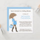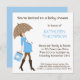 Un facile invitation à customiser, chic et de mod de style de baby shower pour le dans l'expectative maman-à-est. Cette invitation mignonne de baby shower comporte un bleu et le graphique brun montrant une hanche et une femme pregant à la mode avec une grande bosse de bébé par JWI conçoit. Elle tient un parapluie polkadotted bleu et brun qui se repose sur son ventre saillant, évidemment dans les stades avancés de la grossesse et dû pour donner naissance bientôt ! Elle est une maman de mod, avec ses bottes grandes de haute couture, portant un sac à provisions bleu et brun. Perfectionnez pour des douches honorant en attendant les mamans qui savent qu'elles ont un petit bébé. Police élégante coordonnée dans l'assortiment bleu et brun, et arrière bleu assorti.