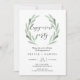 Carte simple et rustique d'invitation de partie de fiançailles comportant l'illustration florale d'aquarelle avec la guirlande verte de branche d'olivier. C'est parfait pour le ressort, l'été et les événements de plage. Pour une personnalisation plus avancée de cette conception, cliquez sur svp la "personnaliser il" bouton ci-dessus ! Les articles assortis sont également disponibles.