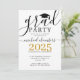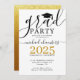 Une audacieuse classe de fin d'études de typographie de script moderne de l'invitation 2023 en rouge, noir et blanc. Ajoutez votre propre année d'études. Convient pour le collège ou le lycée. Style parties scintillant or à l'arrière de l'invitation.