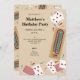 Que vous fassiez une fête d'anniversaire pour un fan de cribbage, organisiez un jeu de société à thème ou invitiez simplement les invités à jouer la nuit, ces invitations amusantes sont parfaites pour personnaliser avec tous les détails de votre fête. Ils présentent des illustrations d'une carte à crampons, des cartes à jouer, des piquets ou des pièces contre un arrière - plan léger bronzé avec tous les détails de votre fête en noir. L'envers dispose d'un motif de liaison.