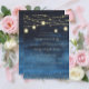 Invitation à la fête de fiançailles bleu marine moderne, élégante et chic avec parties scintillant dorée, lampes à cordes et lanternes. Le texte, les polices et le libellé sont entièrement personnalisables grâce à l'outil de conception facile à utiliser de Zazzle. Contactez-nous pour obtenir de l'aide sur la personnalisation ou pour demander d'autres produits correspondants.