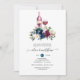 Invitation à dégustation de vin de la fête de fiançailles mariage d'aquarelle avec des pivoines bleu marine, blanc et rouge marron et des roses avec élégante typographie manuscrite.