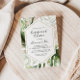 Cette invitation à la fête de fiançailles de verdure tropicale d'or géométrique est parfaite pour un fiançailles moderne.Le design présente de l'or aquarelle peint à la main et des feuilles de palmiers verts et de bananes avec des fleurs roses entassées dans des bouquets, ornant un cadre géométrique.
