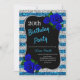 Elégante parties scintillant à rayures argentées et bleues et rose profonde invitation à la fête d'anniversaire pour les femmes de n'importe quel âge. L'âge peut être modifié pour n'importe quel âge. Le texte peut être changé en n'importe quoi pour s'adapter à votre événement. Les polices, la couleur de police et le texte sont entièrement personnalisables ! La forme et le type de papier peuvent être customisés pour correspondre à votre budget et à votre goût!