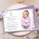 Purple Floral Argent Parties scintillant Girl Baptême Photo Invitation