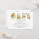 Format horizontal avec traitement de bord spécial (vous pouvez modifier ou éliminer ceci). Parties scintillant d'or Le texte "BABY" est décoré d'aquarelle d'oranges de Cutie, fleurs de fleurs, fruits de bébé et feuilles de verdure pour "Cutie Oranges Parties scintillant d'or d'aquarelle Baby shower Invitation. "Une petite croûte est sur le chemin" est le texte et l'illustration à l'envers. Oeuvre d'Audrey Jeanne Roberts, artiste et designer de renommée internationale, copyright.