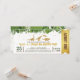 piquez vos pieds et donnez un ROAR c'est une fête de dinosaures ! Ce design d'invitation de billet d'entrée comprend des dinosaures de parties scintillant d'or entourés de feuilles de forêt tropicale verte avec un billet d'entrée en or.