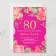 Invitation Parties scintillant d'or rouge florale 80e anniver