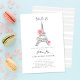 Une invitation à la douche nuptiale élégante, design et minimaliste sur le thème parisien, avec une tour Eiffel recouverte de strass (c'est un effet numérique), une typographie simple et de délicates rayures dessinées à la main sur le dos, des roses d'aquarelle, ainsi que le titre "Future Mrs.".