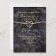 Elégant, boho, luxueux, abstrait moderne en marbre geode parties scintillant or et noir faire-part de mariage avec le dos monogramme, script de calligraphie branché et faux coeur de corde or.