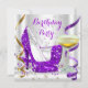 Gold violet et blanc, Champagne d'anniversaire, Parties scintillant d'or jaune haute talons chaussures. Invitation Champagne Glass.. Invitation Fête Toutes Les Occasions. Customisez avec vos propres détails et votre âge. Modèle pour Sweet 16, 16th, Quinceanera 15th, 18th, 20th, 21th, 30th, 40th, 50th, 60th, 70th, 80th, 90, 100th, Fabulous product for Women, Girls, Zizzago a créé ce design. toutes les images plates ! Ils n'ont pas de vraie Parties scintillant, des bijoux en diamant ou de vrais vaches! !