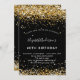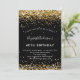 Une invitation moderne, élégante et glamour pour une fête d'anniversaire de 40ème (ou tout âge). Un arrière - plan noir décoré avec de la poussière de parties scintillant en faux or. Le nom est écrit avec un script de style moderne écrit à la main. Personnalisez et ajoutez les détails de votre fête.
