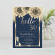Parties scintillant d'or ombre, verre de champagne, tiare, tournesols sur un arrière - plan bleu marine.