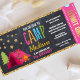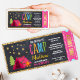 Allez faire du glamping ! allez camper et fêtez votre fête d'anniversaire étincelante cette invitation de fête de glamping Camp Out rose. Caractéristiques du design "randonnée à pied pour camper votre nom d'enfant" en texte de style marqueur coloré et tente rose avec pins et illustration du camp de feu, orné d'une parties scintillant étincelante bordure or sur un arrière - plan de tableau noir dans un style de laissez-passer d'entrée. Organisez votre fête d'anniversaire de camping jardin avec cette invitation de billet de camping. Cette invitation à billets glamping est parfaite pour votre fête de camp, fête d'anniversaire glamping, fête d'anniversaire en plein air ou anniversaire de camping en plein air.