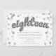 Lettres de ballons d'argent Parties scintillant Confetti modèle d'invitation du 18e anniversaire.