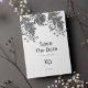 Une simple élégante parties scintillant noire et blanche dentelle fleurie Mariage Sauvez l'invitation Dates. Ce faire-part de mariage floral d'été monochrome minimaliste est parfait pour toute fille sophistiquée. Ce design est idéal pour un événement mariage branché et élégant. Customisez cette conception avec votre message et des informations personnalisées. Tous les dessins sont imprimés.