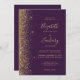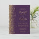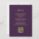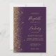 Le bord gauche de cette élégante faire-part de mariage moderne présente un style de parties scintillant en faux or. Le texte personnalisable combine écriture manuscrite couleur or pâle, cuivre et polices italiques sur un arrière - plan violet foncé. L'envers offre de l'espace pour les détails mariages sur un arrière - plan violet solide, ainsi qu'un code QR que les clients peuvent scanner pour visiter votre site Web et RSVP, qui économise le coût d'impression et d'envoi de cartes RSVP séparées.