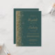 Le bord gauche de cette élégante faire-part de mariage moderne présente un style de parties scintillant en faux or. Le texte personnalisable associe écriture manuscrite dorée, cuivre et polices italiques sur un arrière - plan vert foncé. L'envers offre de l'espace pour les détails mariages sur un arrière - plan vert foncé solide, ainsi qu'un code QR que les clients peuvent scanner pour visiter votre site Web et RSVP, qui économise le coût d'impression et d'envoi de cartes RSVP séparées.