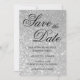 Photographie en faux parties scintillant gris argent clair avec un flou bokeh pour votre mariage enregistrer les dates. La police décorative noire "Save the Date" est un style calligraphique classique et sophistiqué associé à un style de police moderne. Parties scintillant glamour gris pâle sauvez les dates.