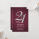 Carte postale Parties scintillant Argent 21st Birthday Party Burgundy Invitation Vous pouvez facilement customiser avec les détails de votre fête en cliquant sur le bouton "Personnaliser". La parties scintillant "21" et l'arrière - plan est définie tandis que vous pouvez facilement modifier les polices, le texte et la disposition en cliquant sur "Modifier à l'aide de l'outil de conception" imbriqué sous le bouton "Personnaliser" pour modifier la couleur, les polices et la disposition arrière - plans.