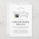 Invitation minimaliste à la fête de graduation noire et blanche | Famille d’Invitations et d’amis de Design moderne classique pour célébrer la réussite de votre diplômé avec cette invitation minimaliste à la remise de diplômes en noir et blanc. Doté d'une typographie moderne propre et d'un design intemporel, cette invitation est parfaite pour les diplômes de lycée, de collège ou d'université. Personnalisez facilement avec le nom du diplômé, les détails de l’événement et un message personnalisé pour donner le ton d’une célébration élégante et mémorable.