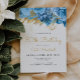 Cette élégante invitation au 80e anniversaire présente une bordure fleurie de fleurs bleu pastel et de feuilles de fausse feuille d'or. . Les mots "80th Birthday" et le nom de l'invité d'honneur apparaissent en écriture manuscrite décontractée de couleur or, le reste du texte personnalisable en caractères sans serif gris charbon. Le design floral est répété à l'envers. Modifiez facilement le texte pour n'importe quel anniversaire d'âge.
