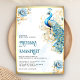 Invitation Pastel Blue Gold Floral Mariage indien Peacock