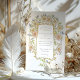Ce faire-part de mariage Rococo enchanteur est orné de délicats fleurs pastel disposées dans un cadre doré orné. Le design se compose d'une élégante cascade de pêches peintes à la main, de crème à la beurre et de fleurs de perches, entrelacées de feuilles verts luxuriants et de courbes botaniques gracieuses. L’effet d’aquarelle douce du cadre apporte une atmosphère romantique et lumineuse à l’invitation. L'envers est entièrement illustré par un motif floral complexe qui rappelle des papiers peints de palais ou des textiles anciens. Symétrique et à courant doux, il utilise des motifs français vintages et des éléments floraux naturels pour créer une esthétique intemporelle et raffinée. Idéal pour les mariages de jardin, les cérémonies de printemps ou d'été et les couples attirés par le charme historique et les détails artistiques.