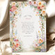 Invite your guests with a soft, romantic fine-art watercolor design featuring an airy floral arch overflowing with blush roses, peach blooms, lilac accents, delicate wildflowers, and fresh sage greenery. The composition frames the text with a light, hand-painted feel; transparent washes, gentle layering, and botanical details that look like a garden illustration on bright white paper.