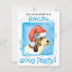 Invitation tous vos amis à une fête de Noël Howling Good avec ces invitations montrant un petit Basset Griffon Vendéen mignon portant un chapeau de Père Noël au milieu d'un tas de flocons de neige. Bonne fête de Howliday !