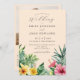 Invitation Peach Tropical Flowers Photo QR Code Mariage