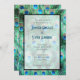 Faire-part de mariage de style Art déco avec une motif aux couleurs vives. Plumes de paon exotiques et sauvages en joli turquoise, vert bijou, bleu aqua et cobalt. Artistique et fantaisie, créée avec des aquarelles. Un design chic et design.