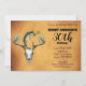 Rustic western Fishing and Hunting Theme Birthday Invitation Card. Entrez vos coordonnées et c'est prêt ! Grosse bouche Bass Saupoudrer pour attraper un leurre de pêche vintage Hula Popper au-dessus d'un grand crâne de cerf de sapin. Parfait pour le pêcheur de chasse ou la femme de pêche dans votre vie. *Cherchez les produits correspondants dans les collections de mon magasin.