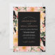 Invitation Pêche orangée Boho moderne et Mariage floral noir