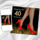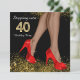 Noir et or entrant dans l'invitation de fête de 40 ans avec des jambes élégantes et des chaussures de talon rouge sur un bel arrière - plan de parties scintillant noire. Vous pouvez facilement customiser cet élégant noir et or qui entre dans l'invitation de fête de 40 ans pour votre événement en ajoutant simplement vos détails dans le style de police et de couleur, et le libellé de votre choix. Vous pouvez également modifier la couleur de l'arrière - plan. Il s'agit d'un design imprimé sans véritable diamants, bijoux, parties scintillant, etc.