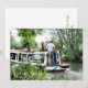 Un dessin représentant un homme conduisant son péniche le long du canal. Les péniches, connues au Royaume-Uni sous le nom de narrowboats, étaient à l'origine utilisées pour transporter des marchandises dans tout le pays. Elles sont maintenant principalement utilisées pour les loisirs et attirent des gens du monde entier pour profiter de nos campagnes rurales. Ces bateaux ont l'air très jolis avec leurs cabines aux couleurs vives, traditionnellement bleues, rouges ou vertes. Des fleurs et des motifs de château ornent également les bateaux les plus traditionnels.